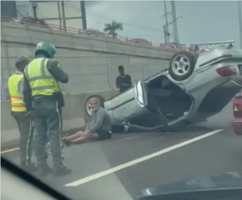 - El hecho ocurrió alrededor de las 2:20 p. m., cuando un vehículo cayó desde la estructura elevada hacia el nivel inferior de la vía, provocando que una persona resultara herida, de acuerdo con reportes preliminares de testigos en el lugar.